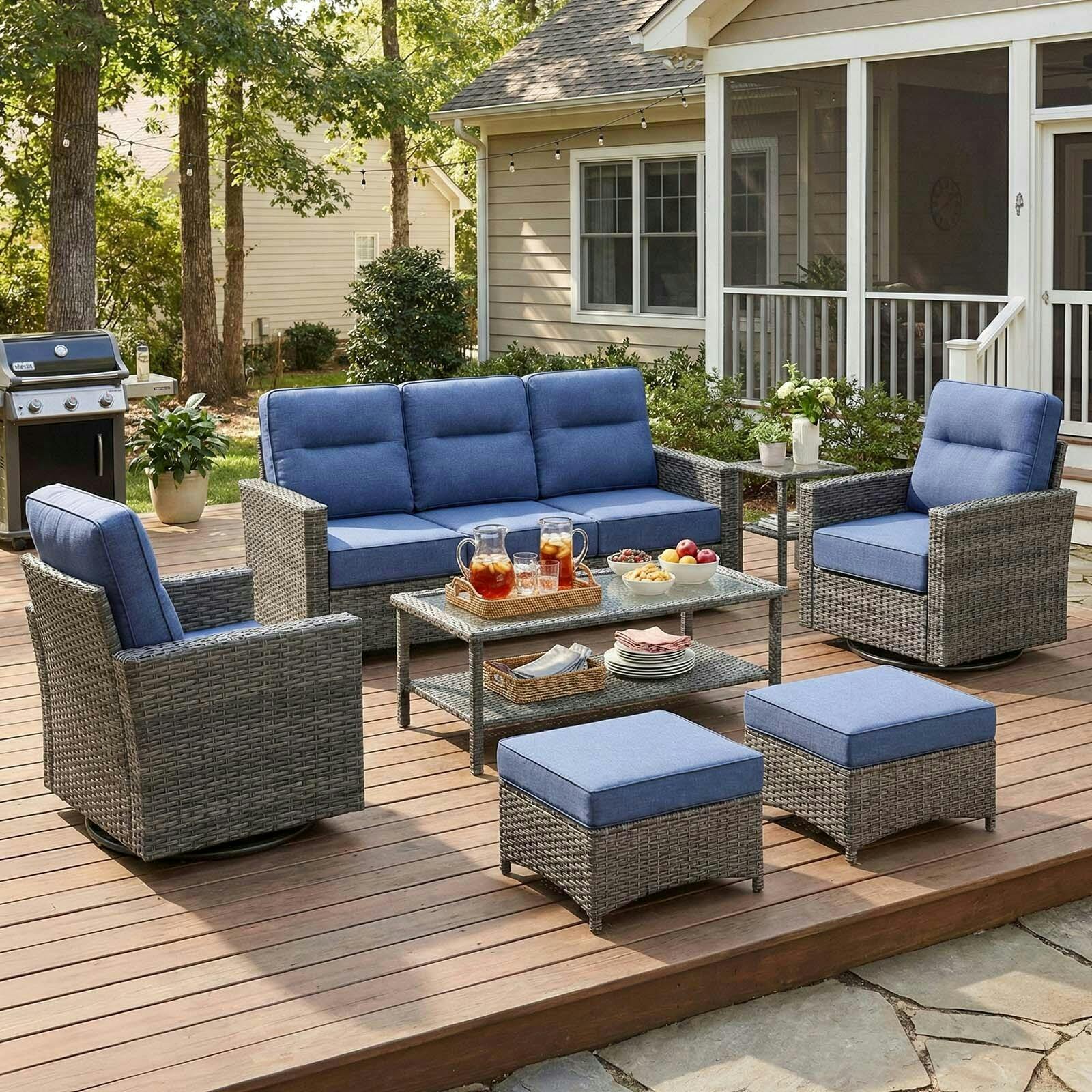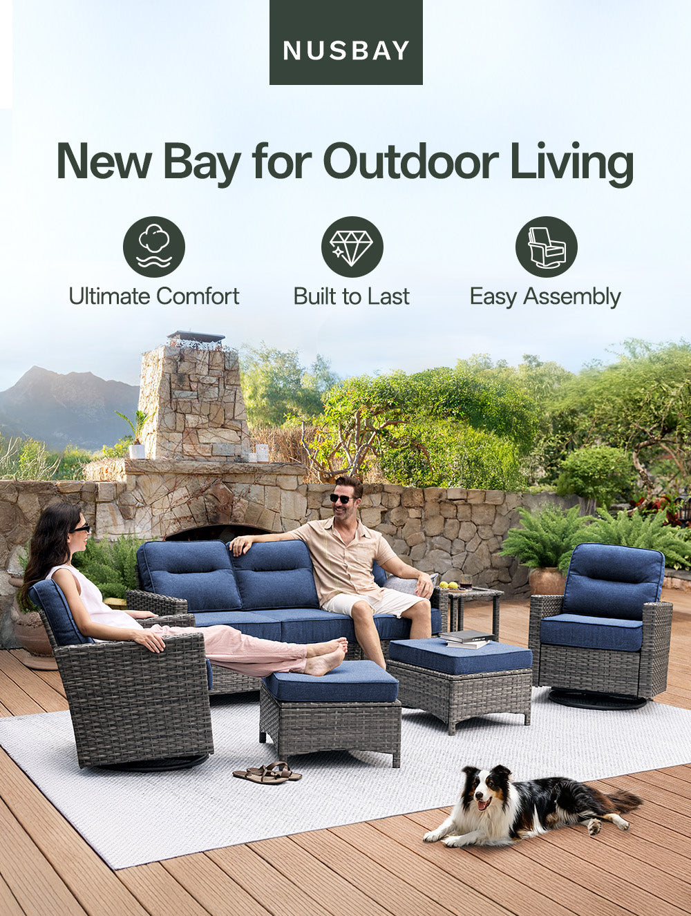 [Snap, Click, Relax — Smarter, Faster Assembly]: No more wrestling with screws. NUSBAY’s patented snap-on design makes setup quick and simple: each armchair needs only 4 screws, and the roomy couch fewer than 10. Laser-cut and robotic-arm welding ensure every hole aligned, letting you turn your porch, deck, sunroom, or poolside into a cozy retreat in minutes